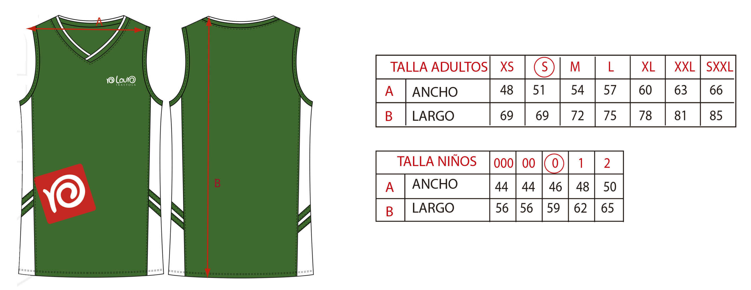 Camiseta de basket color verde con tirantes y cuello en pico con vivo blanco.